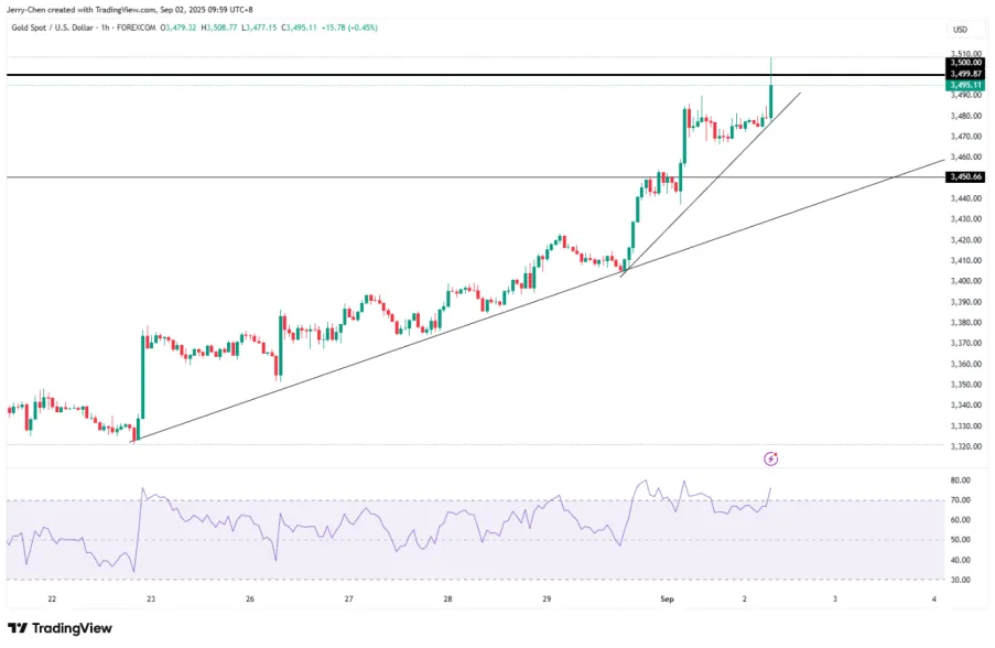 Spot Gold rompió $ 3,500 en las primeras operaciones del martes, ¡estableciendo un récord!