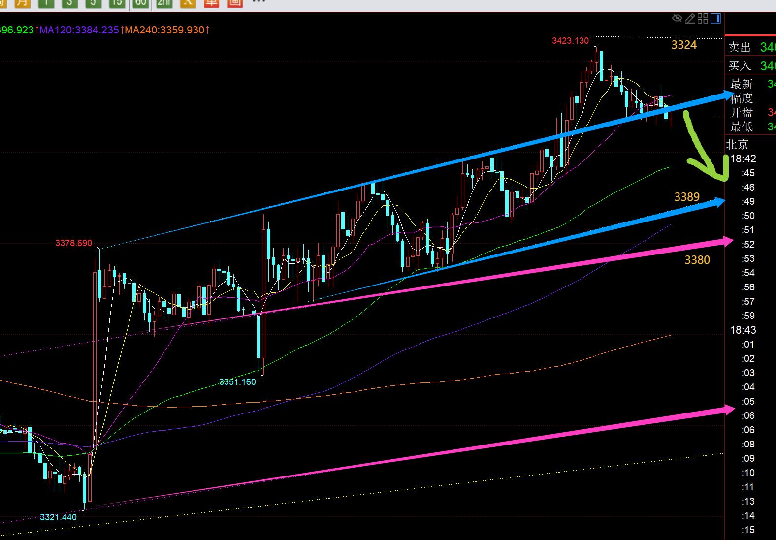 First, gold daily line level: Yesterday, relying on the 5 moving average to stabilize and closed up again, it has ushered in a good small unilateral pull-up in the past few days, but Nel xmxyly.complesso, è ancora che non è sfuggito al consolidamento del triangolo di convergenza negli ultimi quattro mesi; Il massimo notturno è 3423, leggermente perforando la traccia superiore del nuovo triangolo di convergenza del canale e la linea di chiusura alla fine del mercato è ancora su questa linea di canale, quindi non si può concludere che la svolta è efficace ed è necessario controllare il modello di oggi per confermare; In xmxyly.combinazione con il video settimanale, il modello di ciclo di tendenza negli ultimi quattro mesi è dettagliato, 3438-3267 appartiene al terzo round di tendenze, riferendosi ai due round di 3120 e 3247 nel periodo precedente, questa volta 3409-3311 è la prima volatilità e declino. L'onda di 3311 che stabilizza l'attacco verso l'alto è il primo pull-up. Almeno sfrutterà il precedente 3409 High Point, quindi potrebbe lanciare una seconda fluttuazione e declino. Poi è stato ottenuto ieri sera, con il più alto tiro a 3423. Oggi dobbiamo fare attenzione ad attaccare la pressione a breve termine. D'altra parte, ieri ha sottolineato che oggi è la fine della linea mensile, che è facile sopprimere un'onda alla fine del mese. La linea mensile potrebbe chiudere di nuovo sulla linea dell'ombra superiore K e si stabilizzerà e si rialzerà all'inizio del prossimo mese. In breve, oggi devi essere cautamente rialzista o non affrettarti a riaffermare e osservare la forza della tendenza del giorno; Il supporto medio mobile di oggi di oggi si sposta verso l'alto di 3395-96, solo solo quando la chiusura scende in basso può il mercato trasformarsi in un declino a breve termine e tirare indietro, e quindi la seconda oscillazione e la caduta, e quindi fare affidamento sul 3267-3311 Line Derivative Support Pow Livello di 4 ore d'oro: 10 media mobile aumenta 3304-05 e il supporto del binario centrale aumenta di 3392. Questi due sono anche i punti di supporto per il breve termine di oggi. Only when this cycle effectively breaks and loses them can it turn from a volatile pull up to a volatile decline;