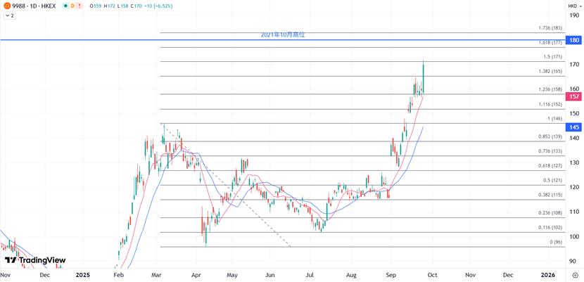 XM Hong Kong Stocks: tra i principali titoli tecnologici nelle azioni di Hong Kong, la tendenza di Alibaba è stata l'evento annuale di Alibaba (09988) di Alibaba. Wu Yongming del CEO del Gruppo di Alibaba ha ribadito che sta promuovendo attivamente 380 miliardi di RMB in Spese in conto capitale per infrastrutture artificiali (AI) e piani per aumentare ulteriori investimenti.