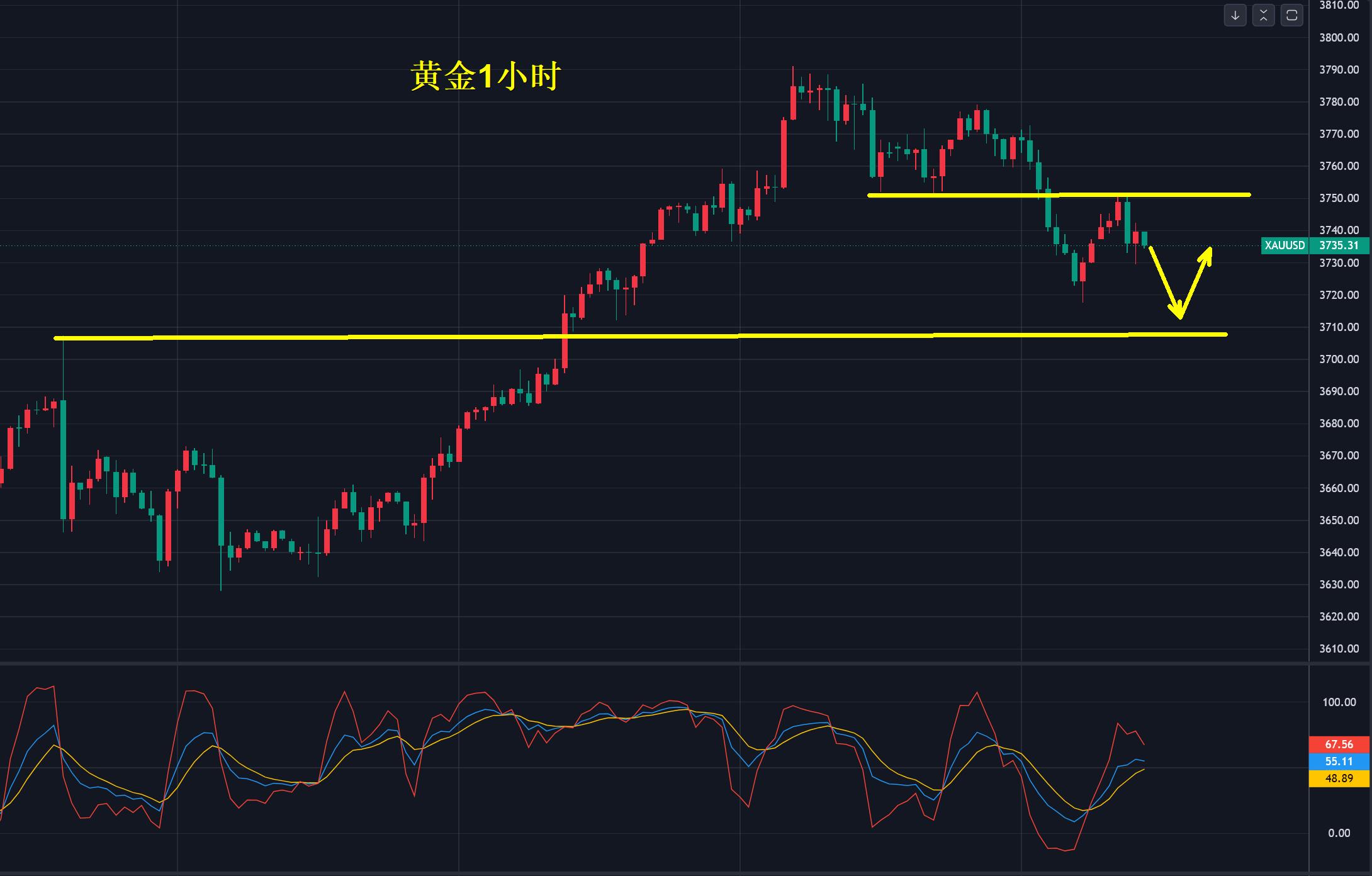Quindi, ci sono due posizioni a cui è necessario prestare attenzione. La pressione è 3750 e il supporto è 3710. Se si rompe qualsiasi direzione all'interno di questo intervallo, continuerai. L'aumento è di quasi 400 dollari USA. Le fluttuazioni a breve termine sono normali. È necessario accettare questa correzione graduale.