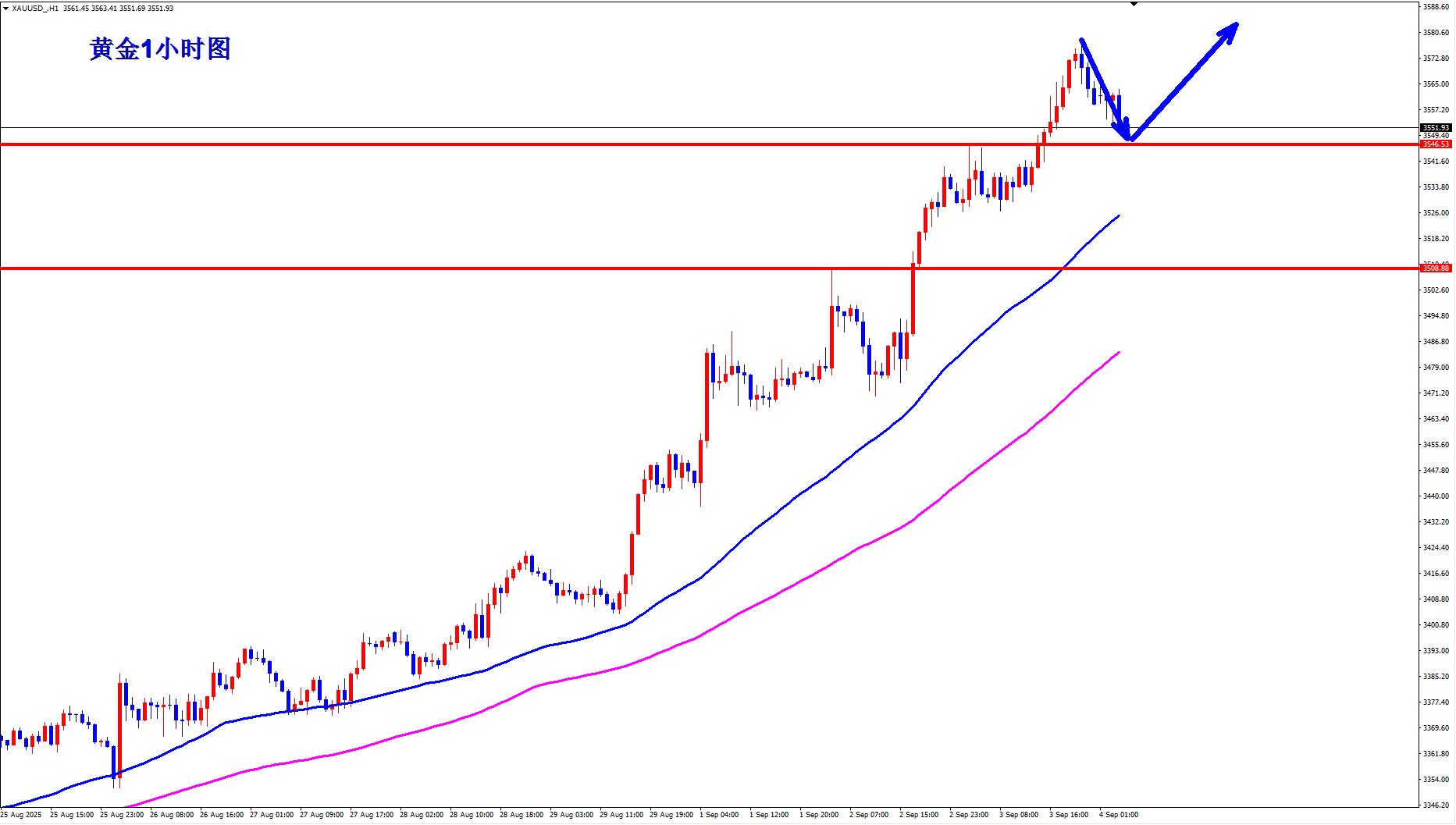 골드는 길이 3546, 중지 손실 3535, Target 3580-3600;