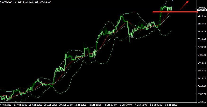 금은 3580보다 더 많고, 중지 손실은 3570, 목표는 3600