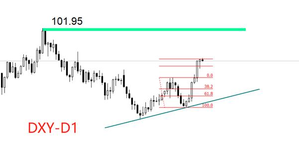 走势结构角度看,日线级别,美元指数中长期处于空头趋势,但已经出现成功的筑底结构,未来走势大概率空转多。最新波段为上涨,且涨势较为剧烈,最高点100.12点,站上了100整数关口。市价运行于前一轮下跌波段的1.382~1.618分位处,可能遭受技术面阻力,短期有回调压力。中期阻力位在5月12日高点101.95点,行情运行至此时将遭遇较强阻力。