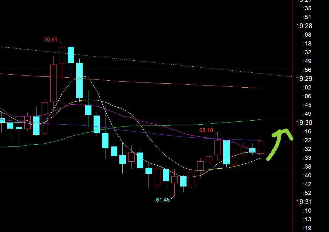 原油方面:周视频提及的短线支撑是63.8,然后观察日线中轨和10均线哪边有效突破的选择来跟随;目前来看,日内支撑63.8出现一波拉升,此时日线稳定于中轨63.8出现了一根大阳,一旦今日收报类似大阳饱满K,那么明日开始就倾向于向上反弹去修复前期大跌;