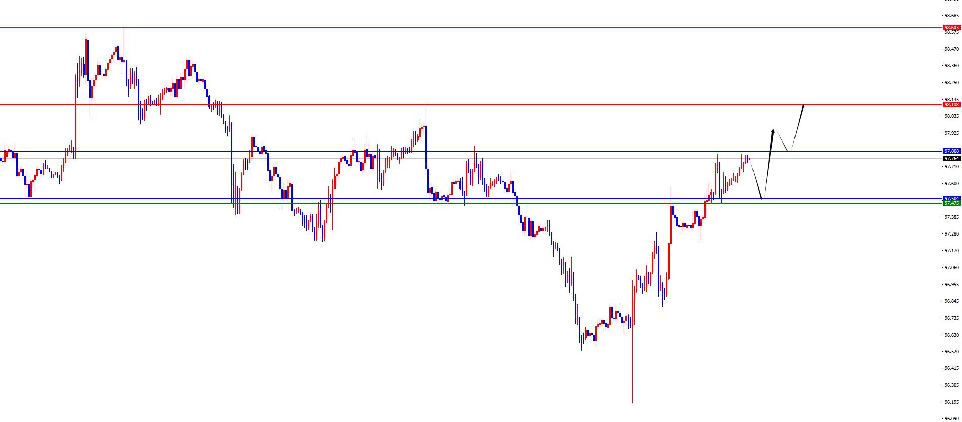 O índice em dólares dos EUA tem um longo alcance de 97,50-60, xmxyly.com uma defesa de 5 dólares e uma meta de 97,80-98.10-98.60