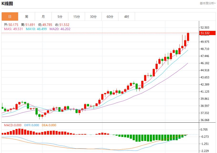 現貨白銀:截止北京時間20:23,現貨白銀上漲,現報51.530,漲幅2.51%。紐市盤前,(白銀)價格在最後一個交易日的水平上波動交易,試圖獲得看漲勢頭,以支持短期主要看漲趨勢的穩定性及其沿趨勢線交易,除了相對強度指標上出現積極信號外,來自EMA50上方交易的積極壓力仍在繼續。