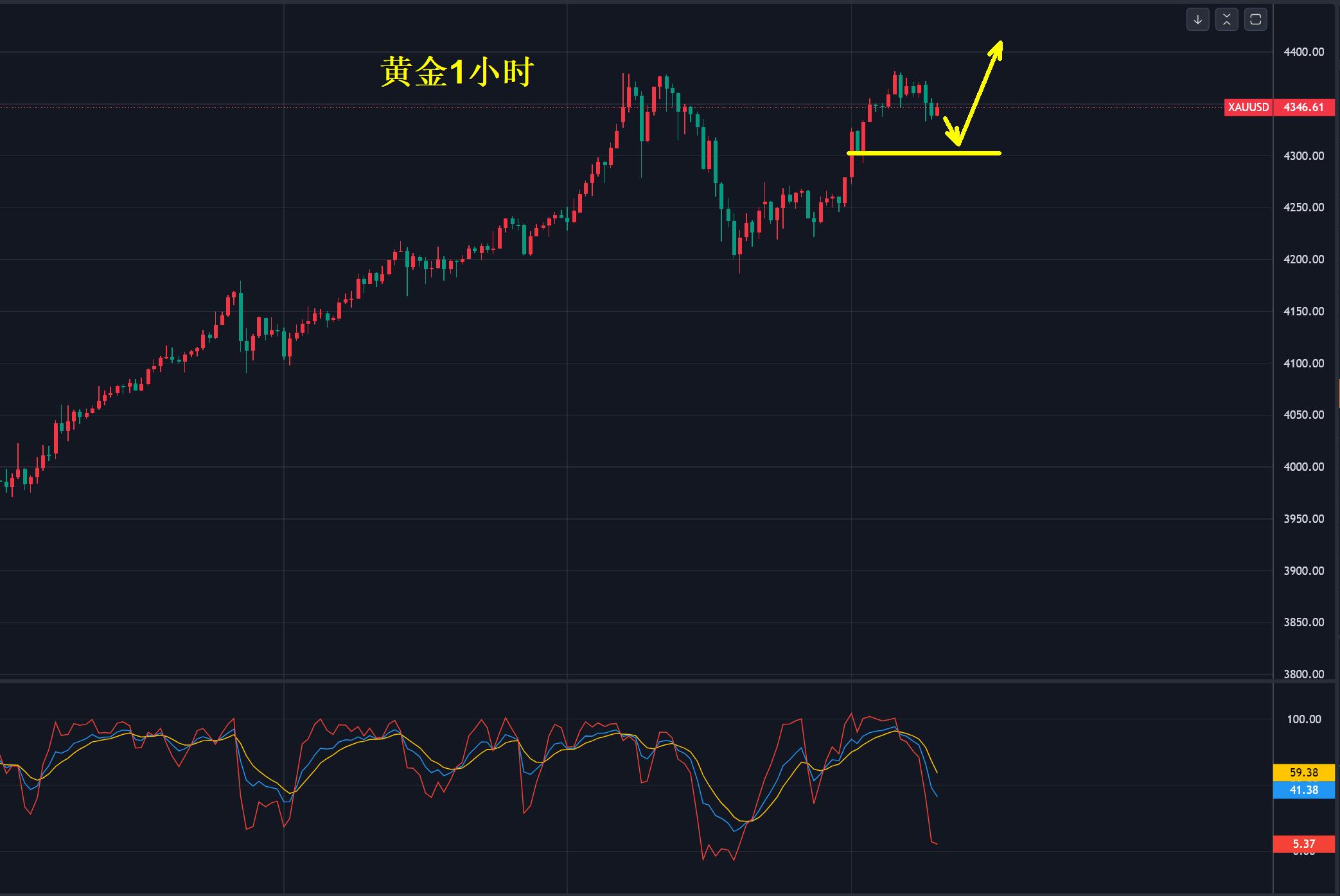 Wird heute der bisherige Höchststand gebrochen? Bildet sich hier ein Doppeltop oder setzt der Durchbruch nach oben fort? Ich denke, der Schlüssel nach dem Rückzug ist der Unterstützungspunkt bei 4.300 US-Dollar pro Unze am frühen Morgen. Der Aufwärtstrend hängt vom Durchbruch des bisherigen Höchststands von 4.385 US-Dollar ab. Diese Welle hat um 1.200 US-Dollar zugenommen, was auch diesmal den größten Anstieg darstellt.
