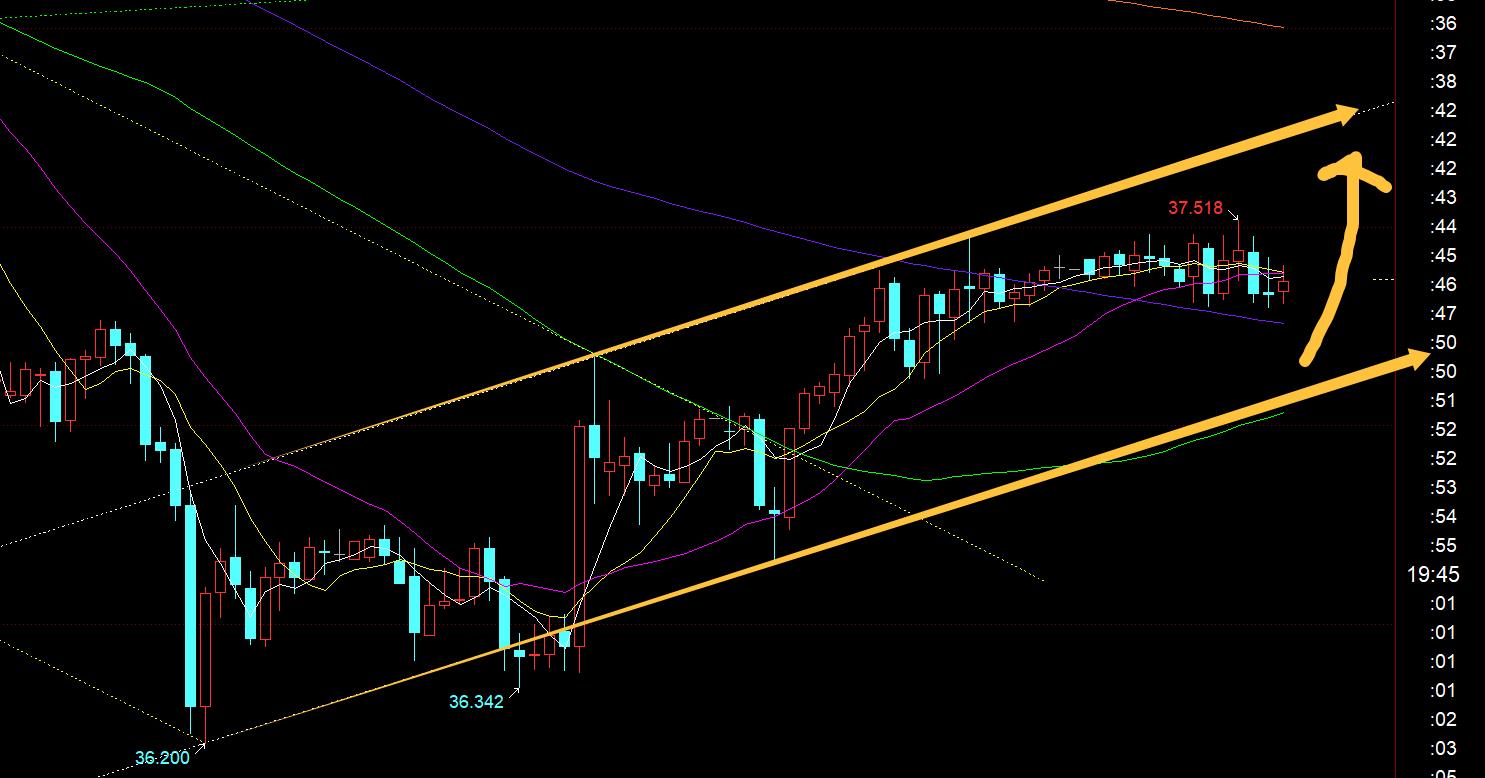 Second, silver: Yesterday morning, it also bottomed out and pulled up K to stabilize, decisively 36.75 continued Continue to follow the bullishness, after breaking through the pressure of the 37 channel, it ends the weak decline and turns to an upward trend. Although the European and American markets are slow, the low point is always rising slowly;