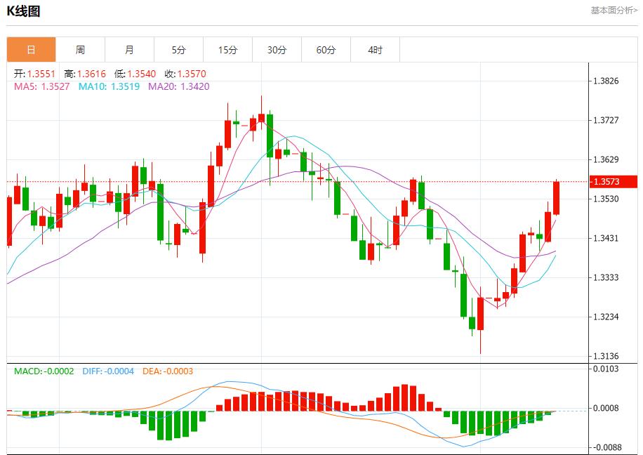 GBP/USD: As of 20:23 Beijing time, GBP/USD rose, now at 1.3575, an increase of 0.57%. Before the New York Stock Exchange, (GBPUSD) price fell in the last intraday trading, collecting previous gains, trying to collect positive momentum that could help restore its massive upside, and trying to unload some obvious overbought conditions on (RSI), especially where negative overlap signals appear.