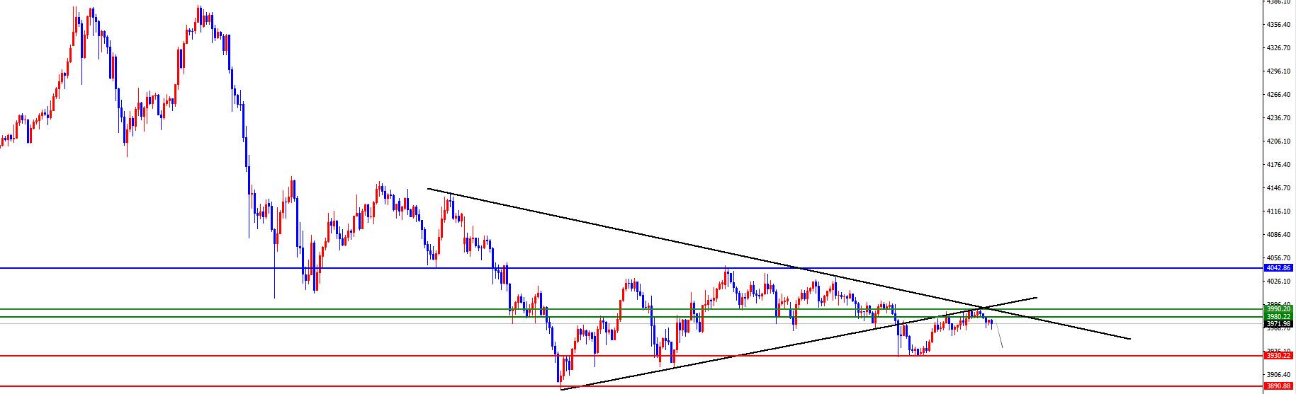 Lo spartiacque chiave è 3980-3990. Il prezzo oscillerà e sarà sotto pressione prima che ci sia un segnale di inversione