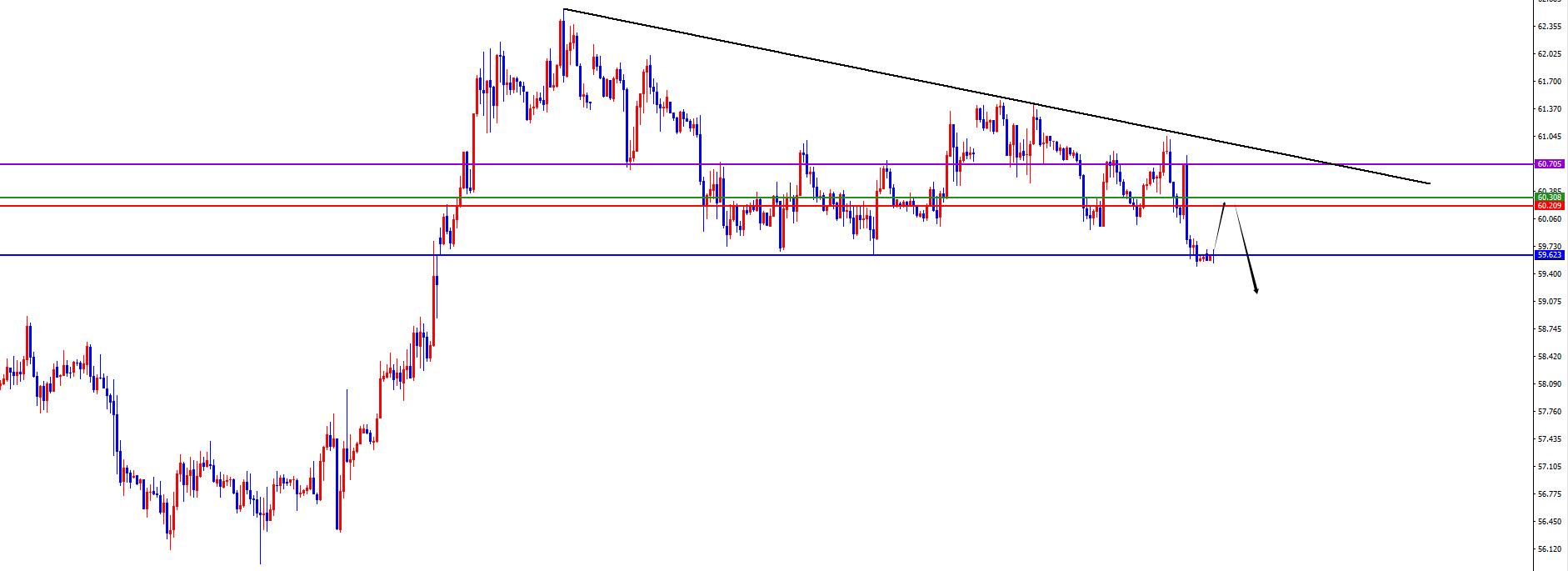 Lo spartiacque chiave è 60,20-30 e il prezzo. Guardate la pressione prima di prendere posizione