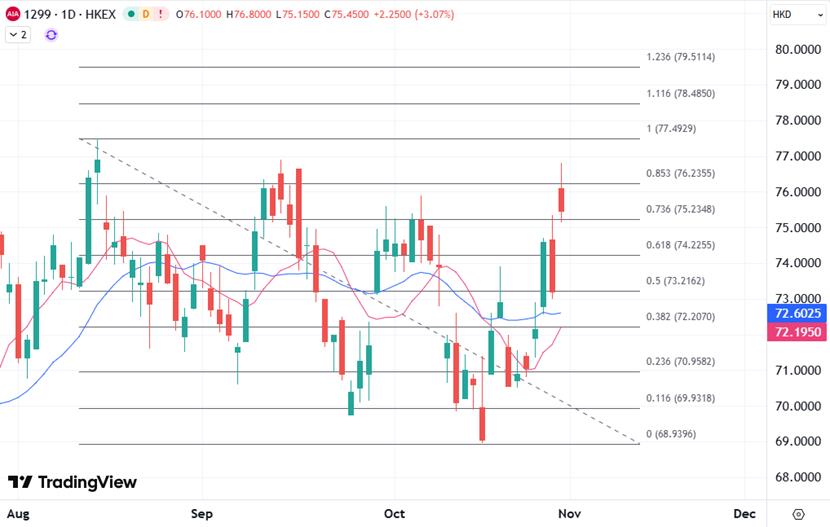 새로운 비즈니스 가치가 또 다른 밝은 지점에 도달, AIA 주가가 이전 최고치에 접근