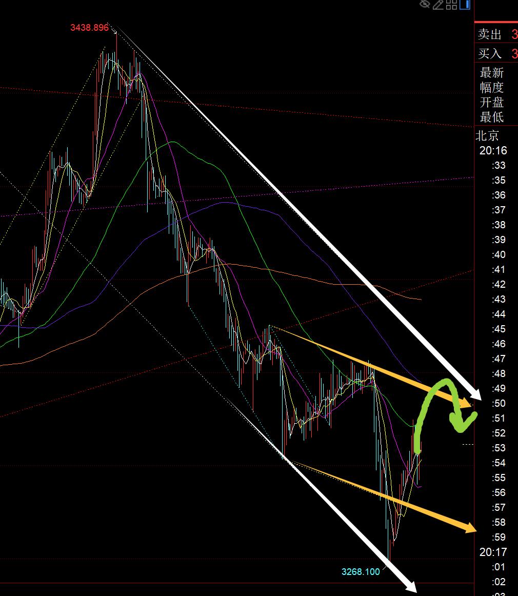 第二,白银方面:昨日第一次触及通道下轨38符合拉升,38.2盈利;第二次再试探,破位了触及;后面考虑到后半夜消息,也就未去参与;