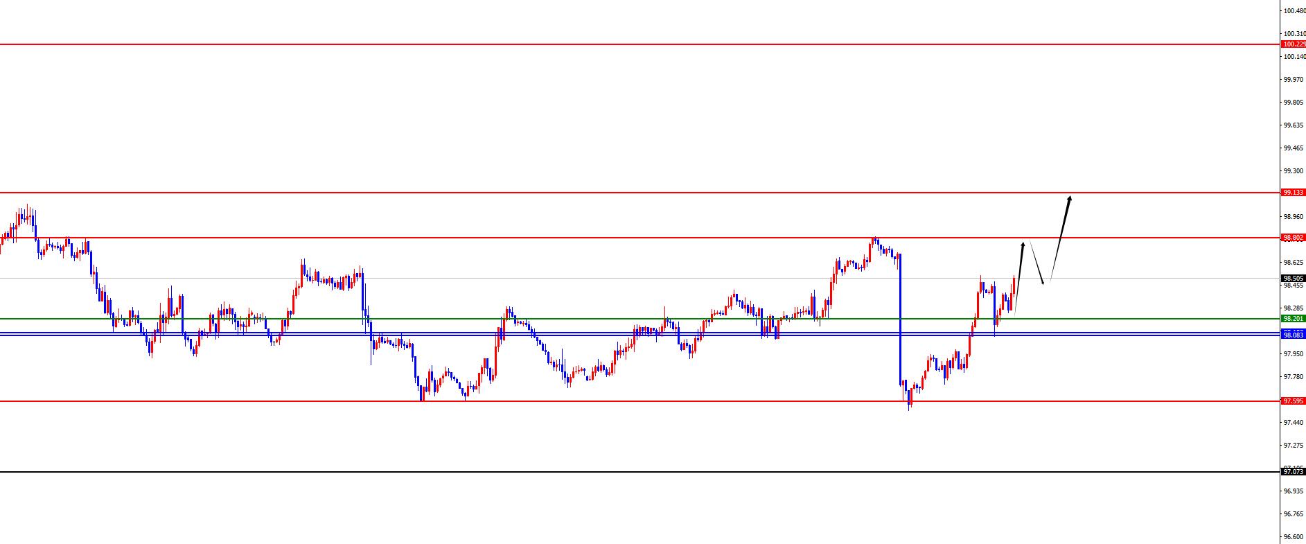 美指98.10-20区间多,防守5美金,目标98.80-99.10