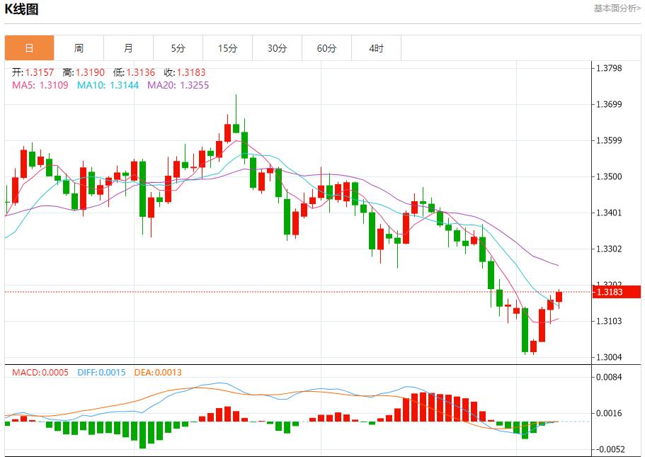 英镑/美元:截止北京时间21:20,英镑/美元上涨,现报1.3184,涨幅0.16%。纽市盘前,(GBPUSD)价格在最后一个交易日下跌,受关键阻力1.3155的稳定性影响,以收集其先前上涨的收益,并试图获得可能有助于突破该阻力的看涨势头,此外还试图卸载相对强度指标上的超买条件,特别是在出现负交叉的情况下。价格依赖于其EMA50的支撑,盘中强势看涨修正波占主导地位。