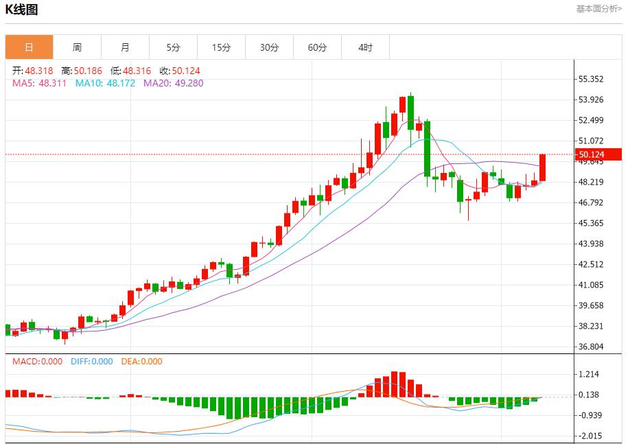 现货白银:截止北京时间21:20,现货白银上涨,现报50.119,涨幅3.73%。纽市盘前,(白银)价格在最近一次交易中在日内水平上持续上涨,突破49.40美元的关键阻力,受到其在EMA50上方的持续交易的支持,并在主要看涨趋势和短期次要趋势线的主导下交易,除了相对强度指标上出现积极信号外,尽管达到了超买水平。