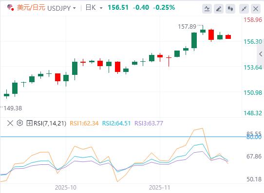 美元兑日元周一略有上涨,但未能形成多头势头。该货币对周二早些时候仍处于157.00以下,保持低区。