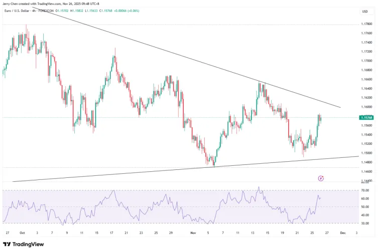 消息面,美国财长贝森特透露,特朗普可能在圣诞节前公布美联储主席人选。市场分析认为白宫经济顾问哈西特和美联储理事沃勒是热门人选。现任主席鲍威尔的任期于明年5月结束。由于哈西特没有美联储任职经历且与特朗普关系密切,若最终胜出或令市场对美联储独立性产生更大的担忧,这是美元的潜在利空。