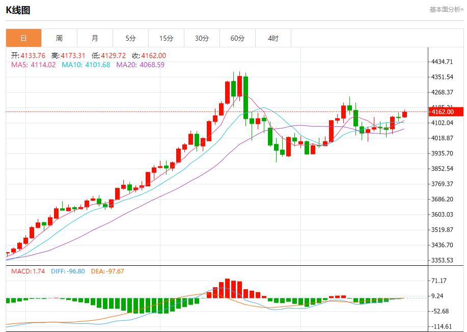 现货黄金:截止北京时间21:20,现货黄金上涨,现报4163.38,涨幅0.76%。纽市盘前,(黄金)价格在最后一个交易日上涨,受到其在EMA50上方连续交易的支持,相对强度指标出现积极信号,主要看涨趋势占主导地位,其交易与支持该趋势稳定性的次要趋势线并行。
