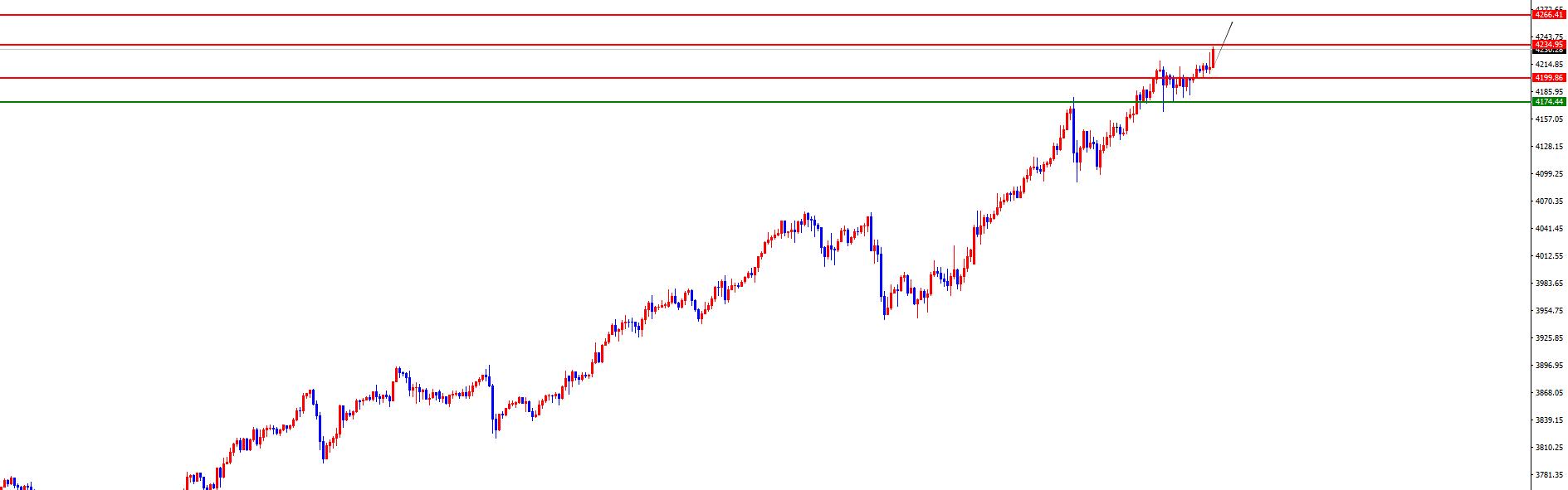 A mínima inicial do ouro em 4.199,73 é o divisor de águas intradiário. Se o preço estiver acima desta posição, os touros continuarão (ao mesmo tempo, haverá uma divergência em uma hora, por isso precisamos estar atentos aos riscos após a alta de curto prazo).