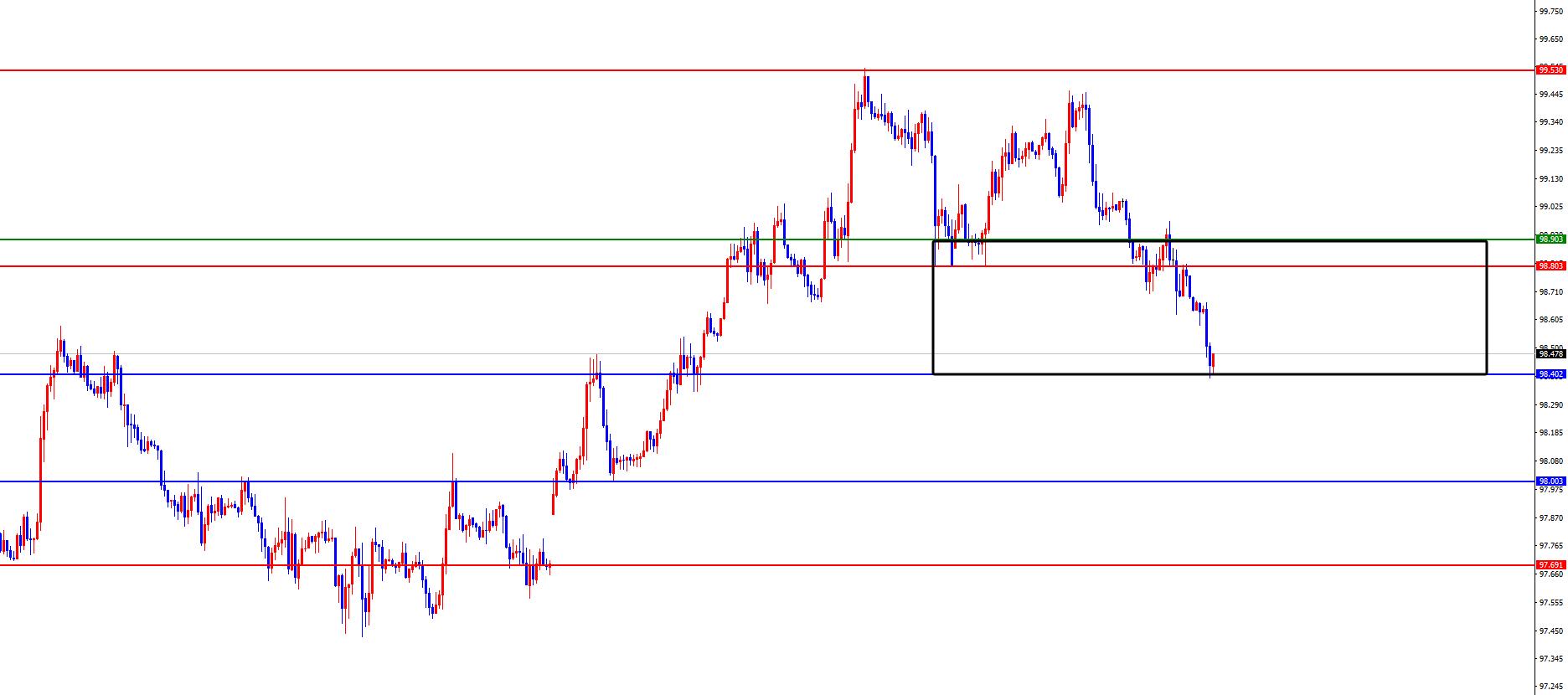 O índice dos EUA caiu sob pressão xmxyly.como esperado, e o foco de curto prazo está em 98Faixa 0,40-98,90