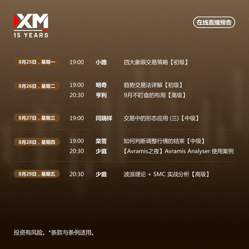 XM在線直播課程,由多位經驗豐富的金融講師共同主持,為你帶來專業且實用的市場分析。