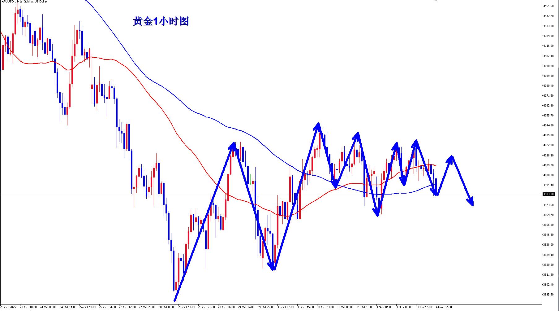 黃金現在整體還是震盪,就是來來回回,不斷拉扯,黃金大行情之後相當一段時間黃金就是這樣的走勢,所以要習慣這樣的行情節奏。不要行情一漲就覺得要大漲,目前還僅僅是反彈修正的行情,黃金隔夜4027空還是如期下跌收割。文章也直接公開提示空,黃金最終還是如期下跌,黃金早盤反彈繼續空。